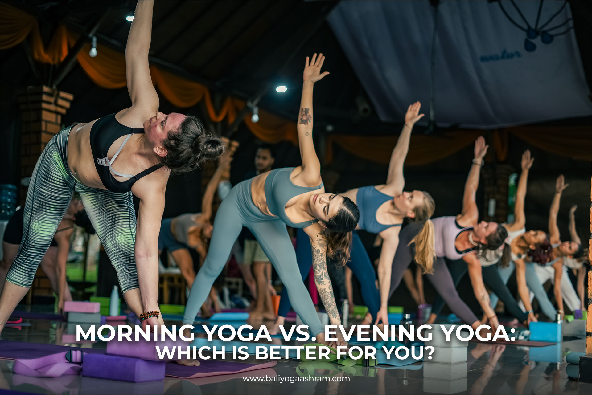 Morning yoga vs evening yoga is one of the most common questions that almost every yoga practitioner or a student of yoga teacher training in Bali has in mind and it is an important question that every person should have the answer to, before starting his or her yoga practice. When we understand how time affects our body and mind, our practice becomes deeper, more effective as well as meaningful. In this blog post, we would like you to explore morning yoga vs evening yoga with simple explanations, easy examples, and real-life guidance. Whether you practice at home or at Bali Yoga Ashram, knowing the difference between morning yoga vs evening yoga helps you choose and develop a rhythm that supports your energy, mood, and lifestyle.
